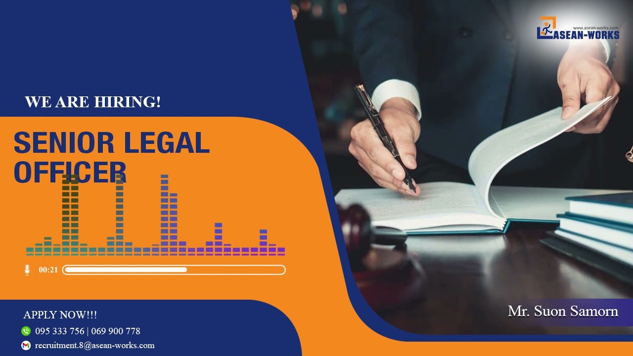 The brands are known by their products/services & these products & services are defined & built by the hidden gems in the organization “The People” (Employees & all the Stakeholders). What has been built successfully & what needs to be achieved in the future is within the hands of employees backed up by the organization’s values, goals & vision.Dear all connection!Asean Woks is looking for Senior Legal OfficerHow to apply:Telegram: 087 613 865Tel: 069 900 599/095 333 797Email: recruitment.5@asean-works.comTelegram Job Board: https://t.me/aseanworksFacebook: https://lnkd.in/g4v9DViLinkedIn: https://lnkd.in/e8BxMiBWebsite: https://lnkd.in/en473Bn#recruitmentagent #aseanworksrecruitment #jobs #hiring